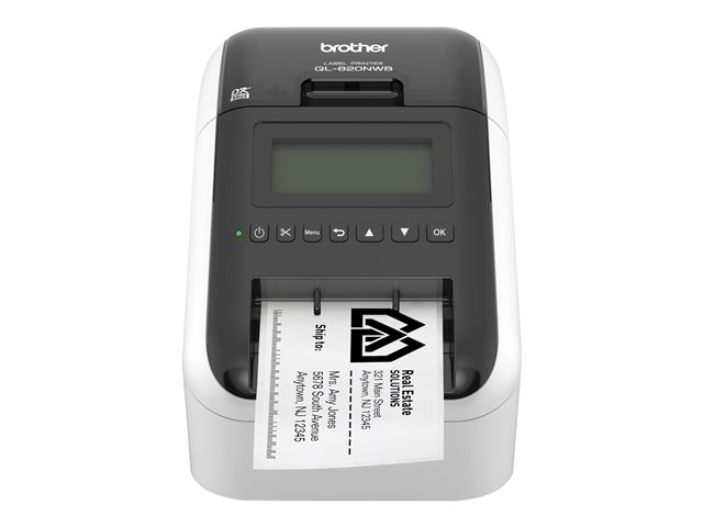 La Brother QL-820NWB ofrece conectividad flexible: tecnología inalámbrica Bluetooth e interfaces Ethernet e inalámbrica (802.11b/g/n). Equipada también con una interfaz host USB, la Brother QL-820NWB es muy adecuada para su uso con un periférico como un escáner. Cree increíbles etiquetas en negro/rojo con DK-2251 o rentables etiquetas de papel para paquetes, tarjetas identificativas, franqueo y mucho más. Ultrarrápida, imprime hasta 110 etiquetas de dirección estándar por minuto con texto en negro a 300 ppp. La pantalla LCD monocroma retroiluminada de fácil lectura permite utilizarla de forma autónoma.